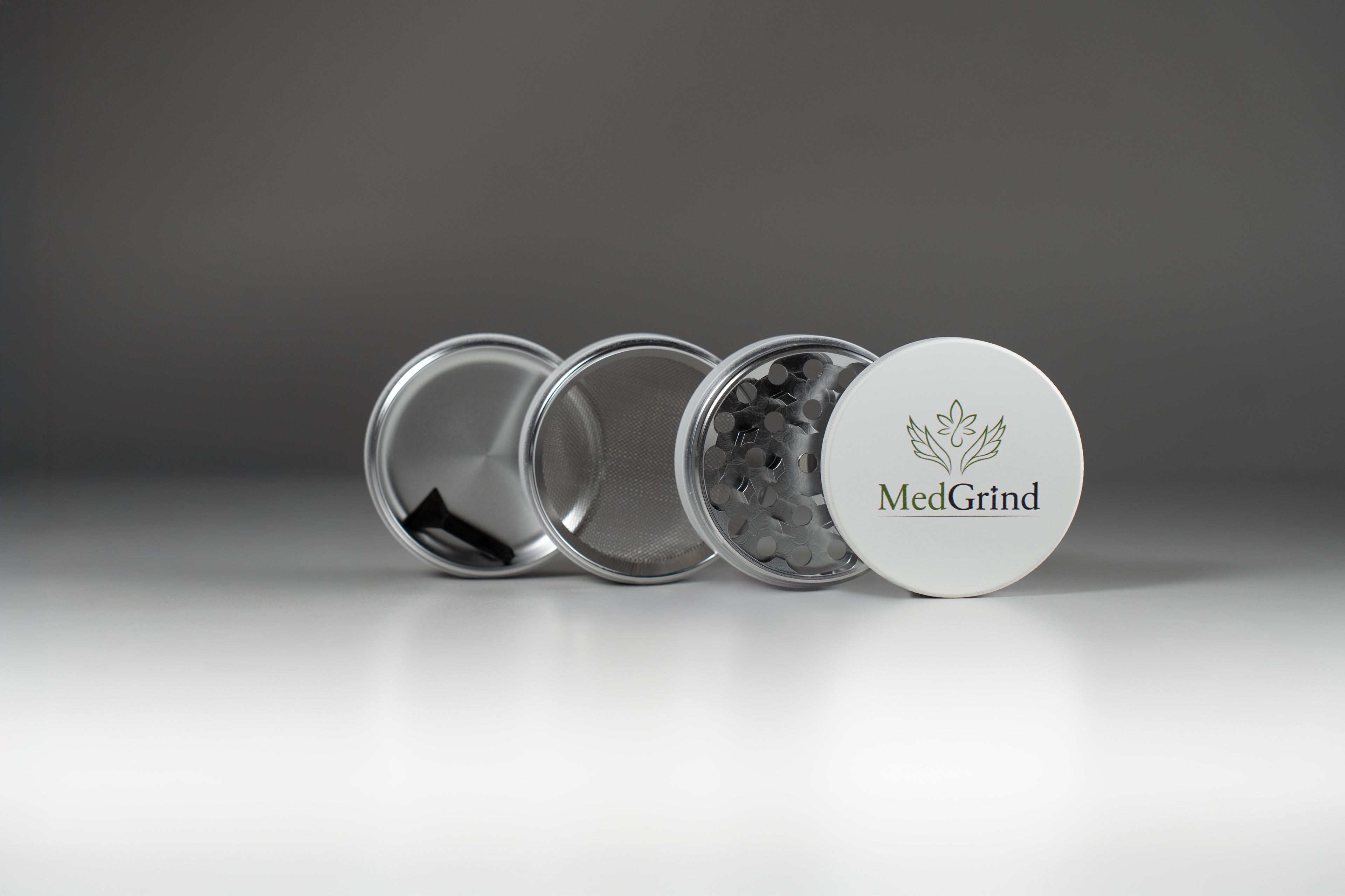 Der MedGrind Premium Edelstahl Grinder, gefertigt aus passiviertem Edelstahl 304 – dem Standard aus der Medizintechnik.